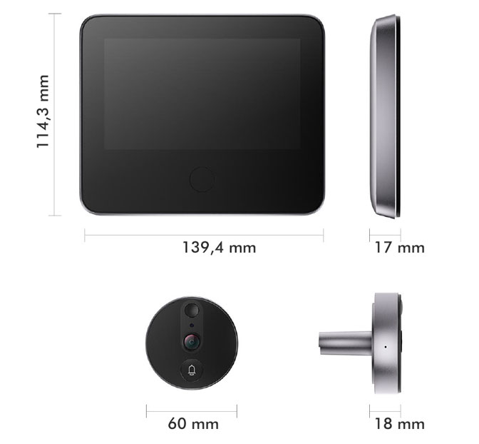 AI detekcija prepoznavanja ljudskog lica (može prepoznati prijatelje i članove obitelji) | uz Miija Cloud Storage membership 1080P HD kvaliteta kamere 120 dana trajanje baterije 24-satno upozorenje za nenormalne situacije Brzo snimanje u milisekundama posjetitelja na vratima kada Lockin CatX osjeti nepravilnosti Super širokokutni pogled od 160 stupnjeva jednim pogledom 5-inch IPS LCD ekran Napajanje u nuždi: Tip-C Komunikacija: Wi-Fi IEEE802.11b/g/n2.4GHz Glavno napajanje: baterija 6000 mAh Primjena po tipu vrata: drvena vrata, metalna vrata Primjenjiva debljina vrata (mm): 35-110 mm Sadržaj pakiranja: 1 x špijunka, 1 x LCD ekran, 1 x nosač ekrana, 1 x kabel Tip-C, 1 x odvijač, 2 x vijak M3x20 mm, 2 x vijak M3x40 mm, 2 x vijak M3x60 mm, 2 x vijak M3x80 mm, upute za ugradnju i korištenje